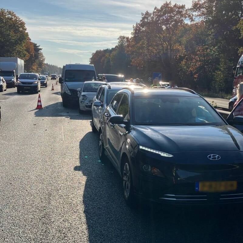 Op de A28 bij Wezep is een ongeval gebeurd met vier auto's en twee bestelbusjes.
