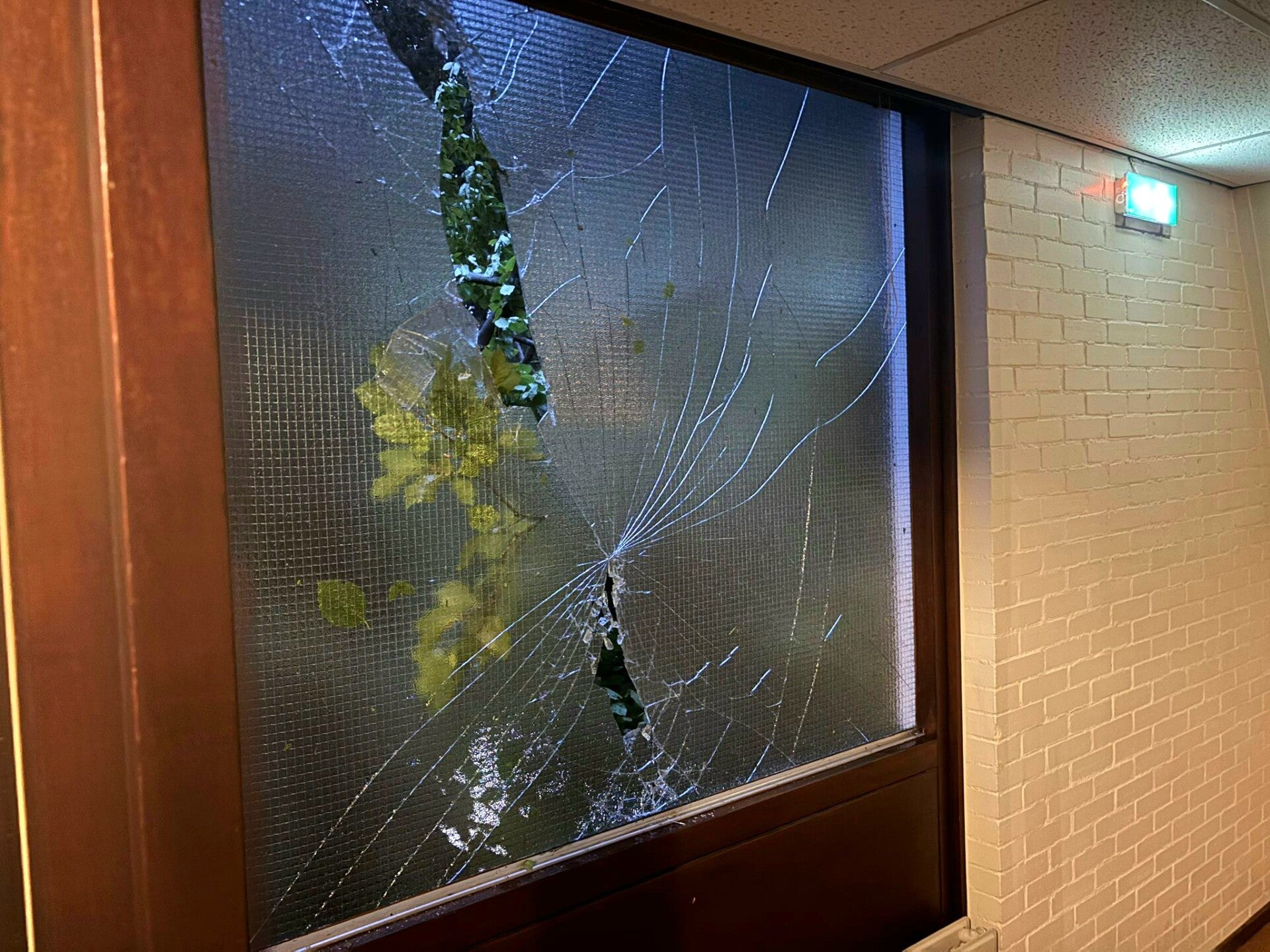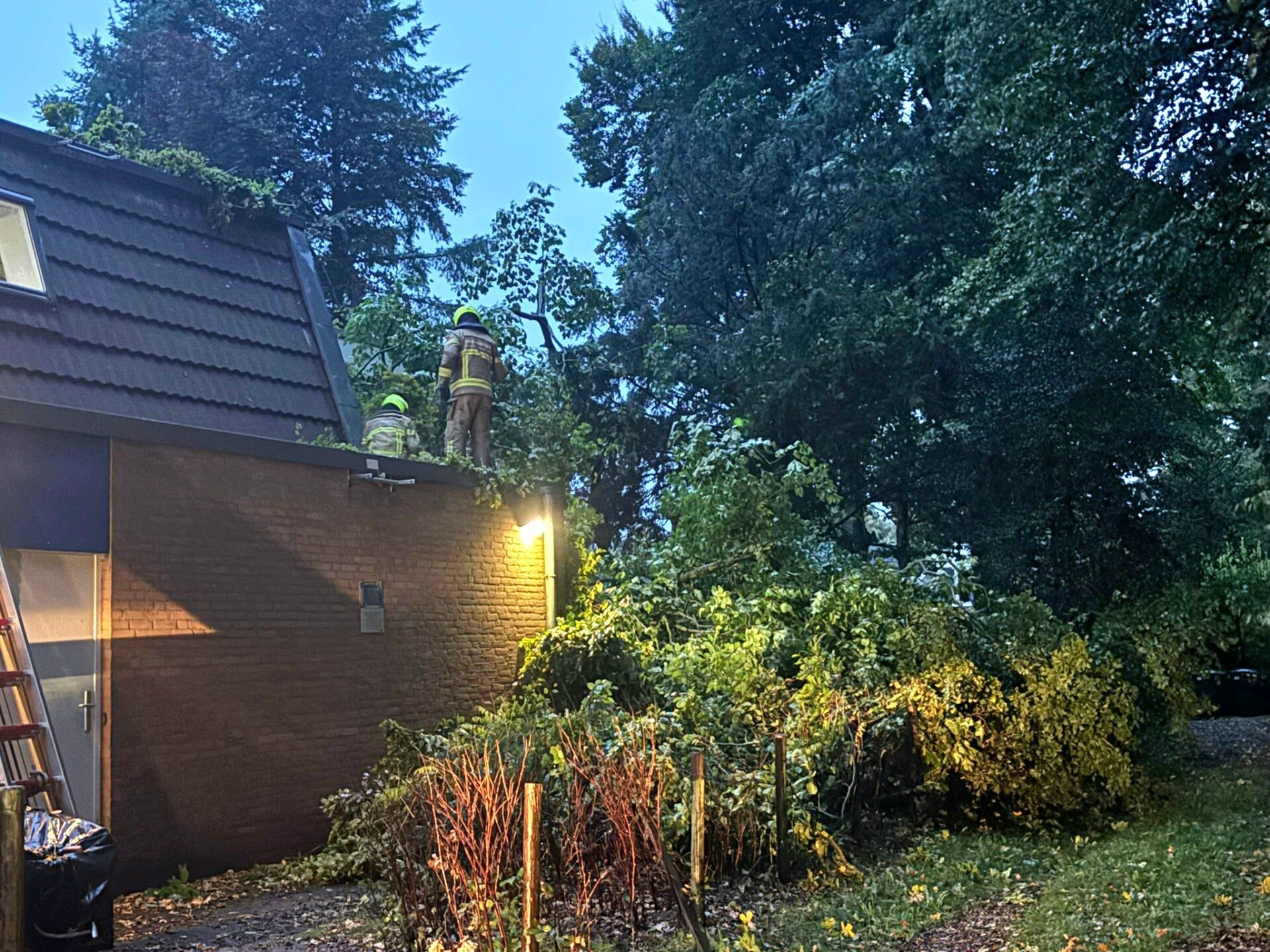 Door de harde wind was daar een boom op een appartementencomplex gewaaid. De boom veroorzaakte een gebroken raam op de bovenste verdieping.
