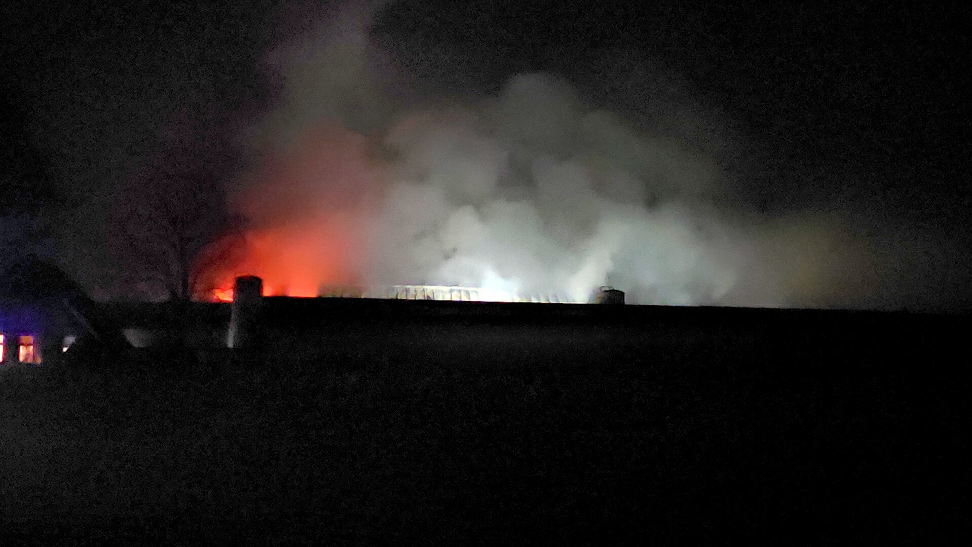 Naast de dieren stonden er in de stal ook diverse landbouwmachines en lag er een grote hoeveelheid hooi opgeslagen. Het gebouw is door de brand volledig verloren gegaan.