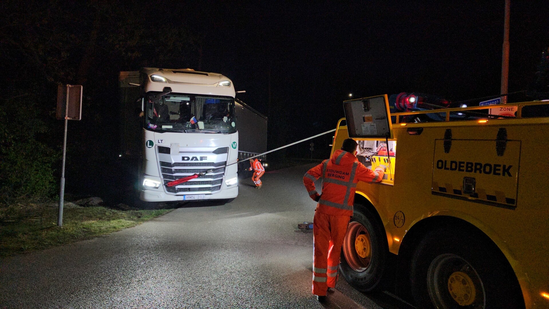Bergingsbedrijf Stouwdam werd ingeschakeld en wist de situatie vakkundig op te lossen. Met gespecialiseerd materieel werd de vrachtwagen uit het zand getrokken. Na de berging is het voertuig onder begeleiding naar het industrieterrein geleid.
